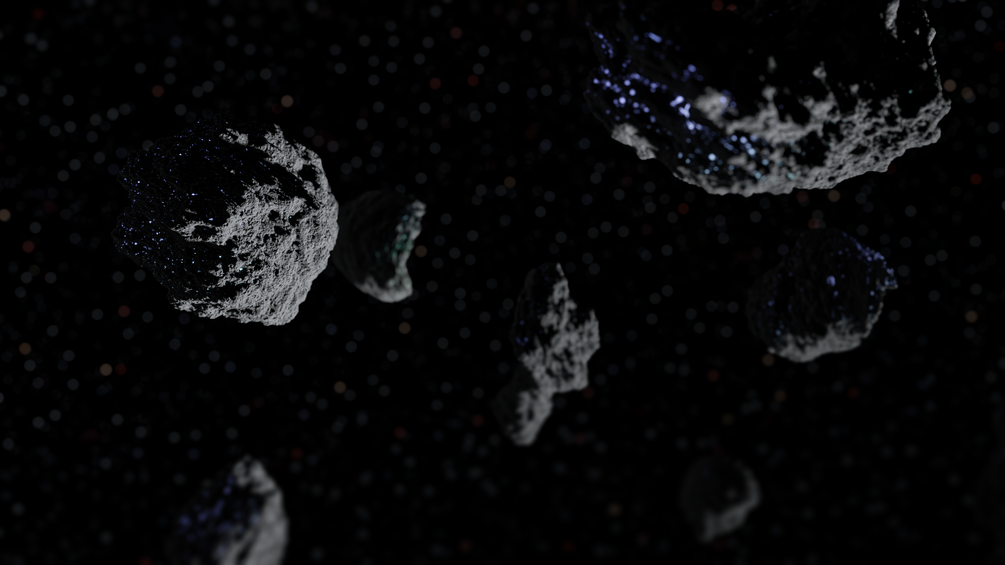 Here you can grab the .blend file with 16 asteroids and a procedural shader.
